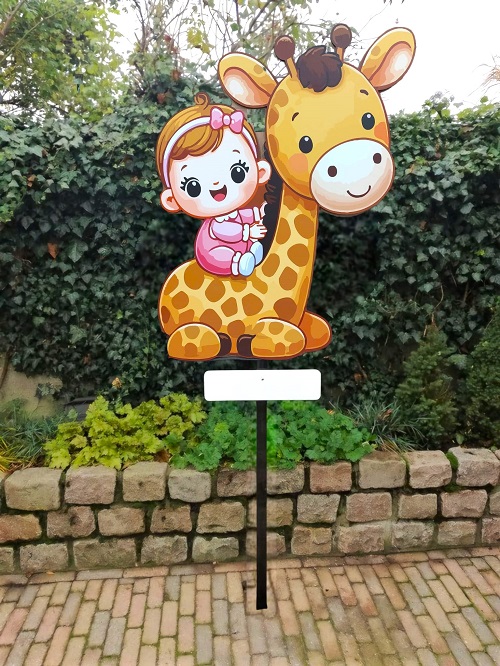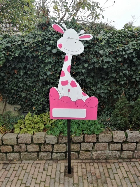 De meeste borden hebben we dan ook in een jongen en meisje uitvoering. Populaire borden zijn bijvoorbeeld de Giraffe jongen, Giraffe meisje, Ooievaar Mint, Beertje jongen, Beertje meisje, Dino, Meisje met strik of een grote ooievaar. Alle geboorteborden worden met een stevige pal geleverd.