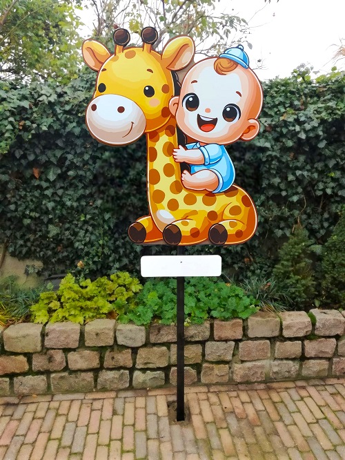 Ook kunnen we dan de naam van de baby printen en op het bord monteren. Dit is dan weerbestendig en hoef je daar ook niet meer achteraan.